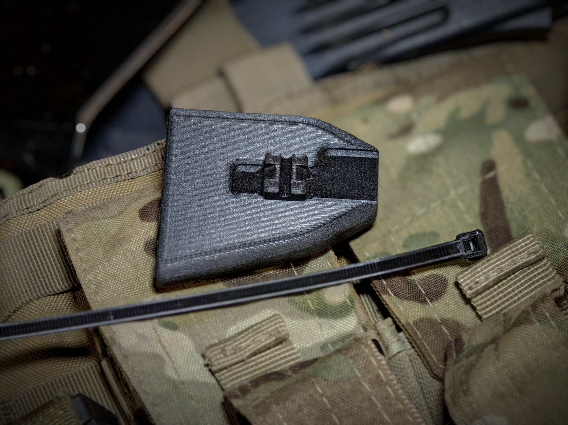 Imprimé en PETG renforcé à la fibre de carbone avec un haut taux de remplissage pour un maximum de solidité.